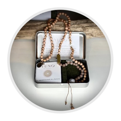 Die YUNO Harmony ist handgeknüpft aus natürlichen, ungefärbten Perlen aus Rosa Palisanderholz. Indisches Palisander oder Rosenholz ist für seine angenehme Textur und seinen Duft bekannt. In einigen Kulturen wird ihm eine beruhigende und harmonisierende Wirkung zugeschrieben, die zur Entspannung und Meditation beitragen kann. Das Holz wird oft für die Herstellung von Meditations- und Gebetsgegenständen sowie von Musikinstrumenten wie Tablas und Sitar verwendet.